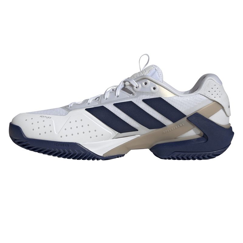 Experience unmatched speed and stability with the adidas Adizero Ubersonic 5 clay tennis shoes. A lightweight mesh upper reinforced for lateral movements combines with a responsive Lightstrike midsole for optimal court feel and quick transitions. Engineered for comfort, the breathable materials wick away sweat, while the durable Adituff zones protect high-wear areas. Finished with a Speedframe outsole for secure heel lockdown and exceptional traction, these shoes are designed to keep you agile and confident on hard courts.