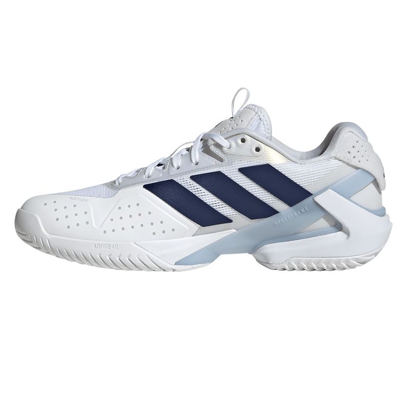 Move instinctively with the adidas Adizero Ubersonic 5 tennis shoes, built for dynamic, lightweight performance. The breathable mesh upper is reinforced for lateral stability, while the Lightstrike midsole keeps you low to the court for quick reactions. Designed for a balanced fit, these shoes ensure comfort during intense play, with abrasion-resistant Adituff materials in key zones for durability. The Speedframe outsole provides reliable traction and lockdown for hard court stability, helping you dominate point after point.