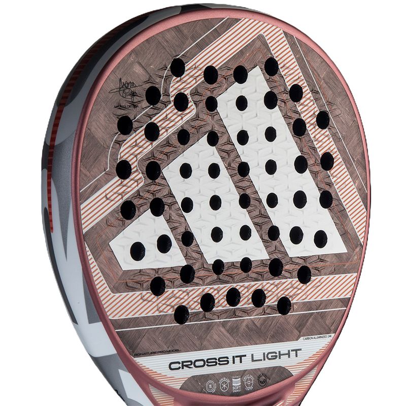 Co-designed with Martita Ortega, the adidas Cross It Light 3.4 is built for players who value comfort, maneuverability, and precise control to dictate the tempo of every point. Its round shape and lightweight 345–360 g frame deliver exceptional agility without sacrificing stability, making it ideal for intermediate to advanced players. Dynamic Air Flow technology reduces air resistance for faster swings, while 11 Thirteen hole technology enhances structural rigidity, power, and durability. The Carbon Aluminized 24K surface provides added stiffness for clean, accurate strikes, complemented by EVA Soft Energy rubber for a responsive, comfortable feel. Finished with Spin Blade Mold 3D texture for enhanced spin and technical shot-making, the Cross It Light 3.4 blends finesse, power, and innovation in one high-performance package.
