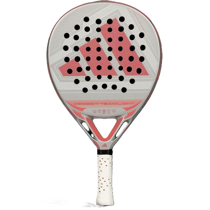 The adidas Cross It Team Light is a lightweight, round padel racquet designed for female players who prioritize comfort, control, and defensive consistency. Its even balance and centered sweet spot enhance maneuverability, while the fiberglass frame and face create a softer feel with smooth, controlled ball output. A low-density Soft Energy EVA core delivers excellent comfort and easy depth, helping you stay composed through long rallies. Dynamic Air Flow reduces air resistance for quicker reactions, while Spin Blade Decal and Smart Holes Curve improve spin and precision; Extra Power Grip adds subtle inertia for added stability on contact. Reinforced with Structural Reinforcement and 11 Thirteen technology and finished with 3M Protector Tape, this 38 mm racquet (345–360 g) offers agile, confidence-building performance for intermediate players.