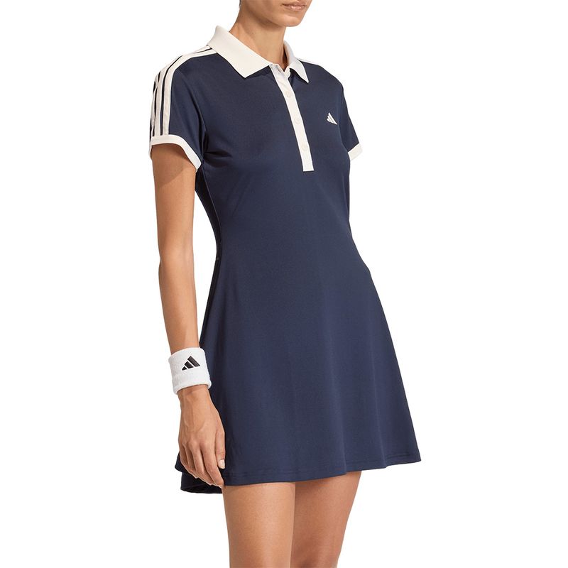 Keep it classy on the courts in the adidas Heritage collection. The Heritage Dress features a slim fit, aeroready technology, flat knit collar with 3-button placket, and contrast colored seams. Made in part with recycled materials.