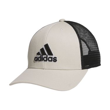 This adidas trucker hat features cotton with mesh panels for a soft feel and added airflow. It has a snapback closure for an easy and secure fit when you're on the move. The 6-panel medium pre-curve silhouette is enhanced by a raised Badge of Sport logo, completing the look. Made with 100% cotton, it utilizes adidas Climacool technology to wick away sweat and keep you comfortable.
