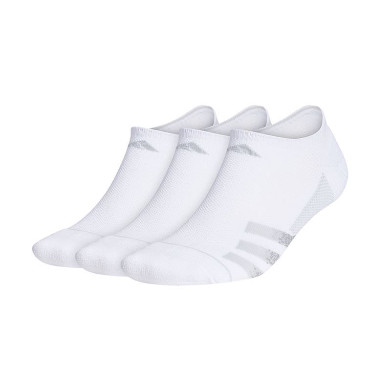 The adidas Superlite 3 Stripe no show sock (3 pack) has a low-profile look and feel with upper mesh and cushioning at the heel and toe. Made with moisture-wicking yarn containing recycled materials. Comes as a three-pack.