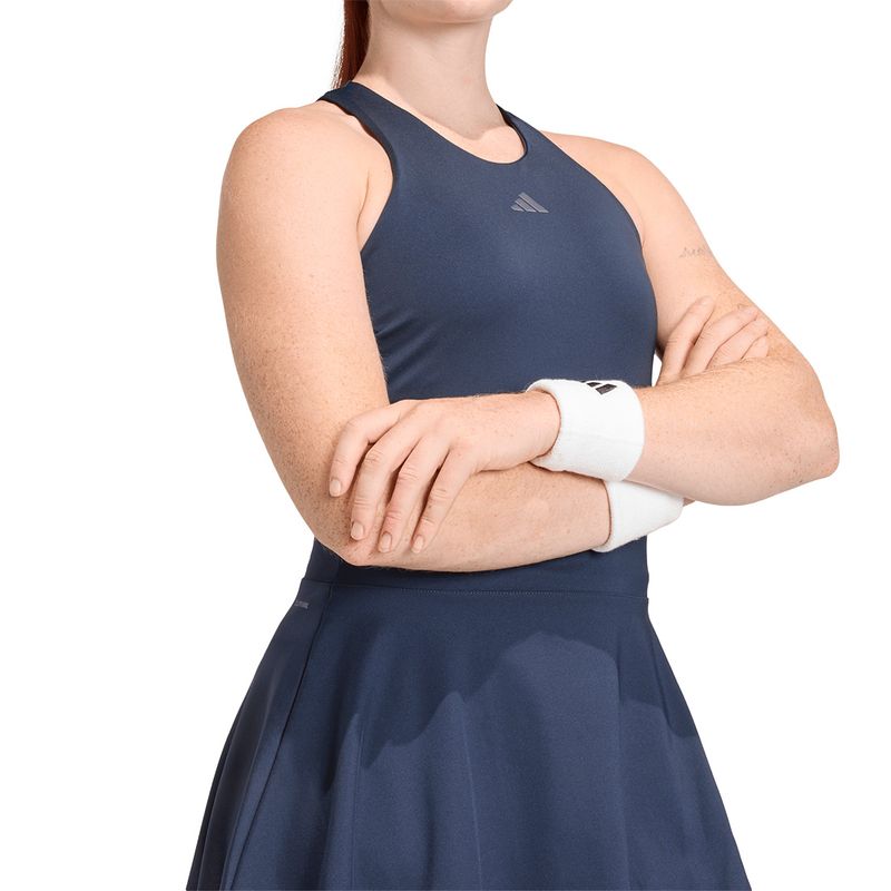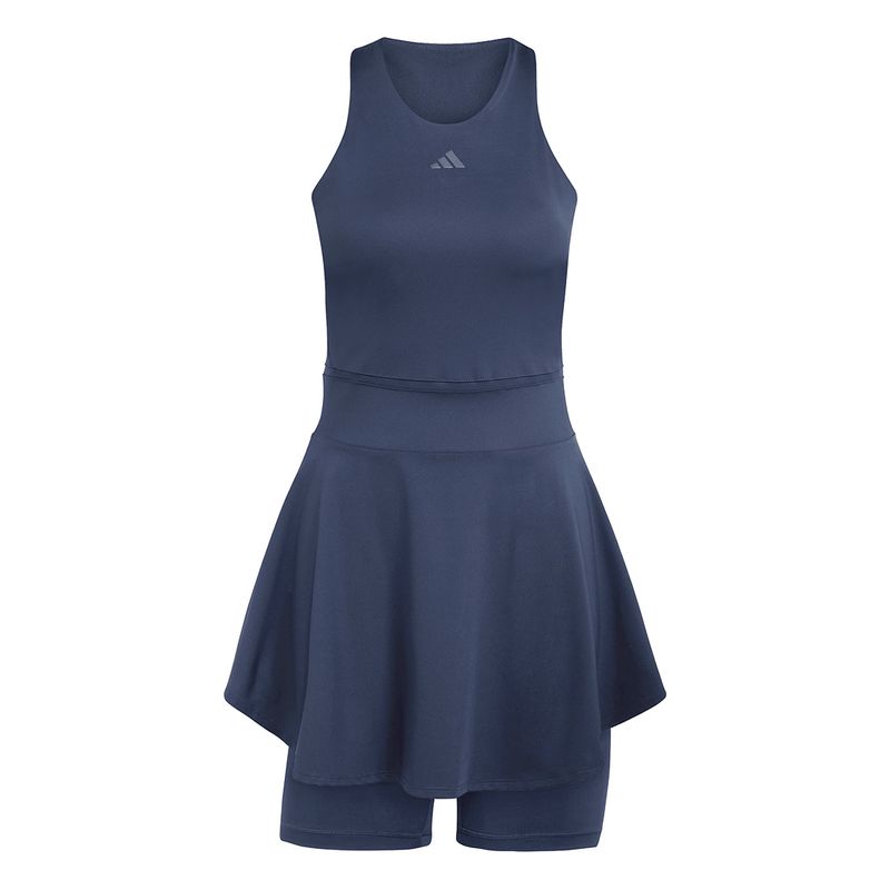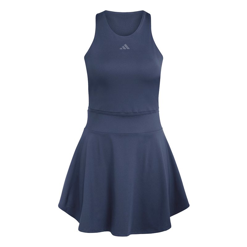 Find all of your tennis must-haves in the adidas Gameset Collection that support players to play their best and feel their best on any given day. The Y Dress features a slim fit, CLIMACOOL technology, higher neck and back construction, and integrated bra and inner ball shorts. Made in part with recycled materials.