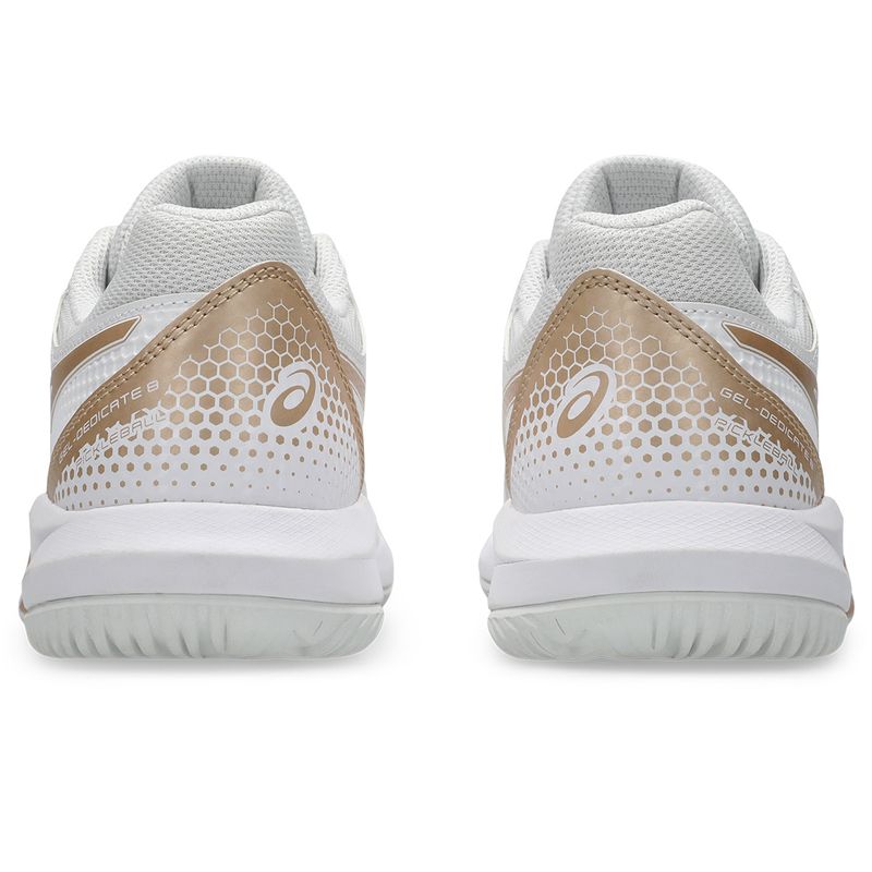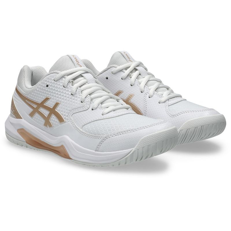 Equipped with a TRUSSTIC support unit and a wrap-up outsole, the Gel-Dedicate 8 enhances stability while simultaneously allowing your feet to move freely. This unique combination empowers you to confidently change directions, especially during lateral movements, with improved agility and control.Color: White/Champagne