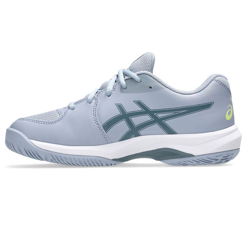 Durable and comfortable, the Gel-Game (Grade School) tennis shoe is designed for young recreational athletes who play several times a week. Trusstic technology in the midsole enhances stability on the court, while the updated tooling integrates EVA midsole foam with GEL technology cushioning in the forefoot for improved shock absorption. The upgraded outsole provides greater flexibility and a more durable construction for long-lasting performance.