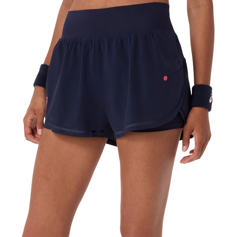 Power up your game in the bold colors of the Asics Roland Garros 2026 collection. The Match Short features a thick elastic waistband, seam details, and built-in ball shorts. Made with moisture-wicking fabric containing recycled materials.