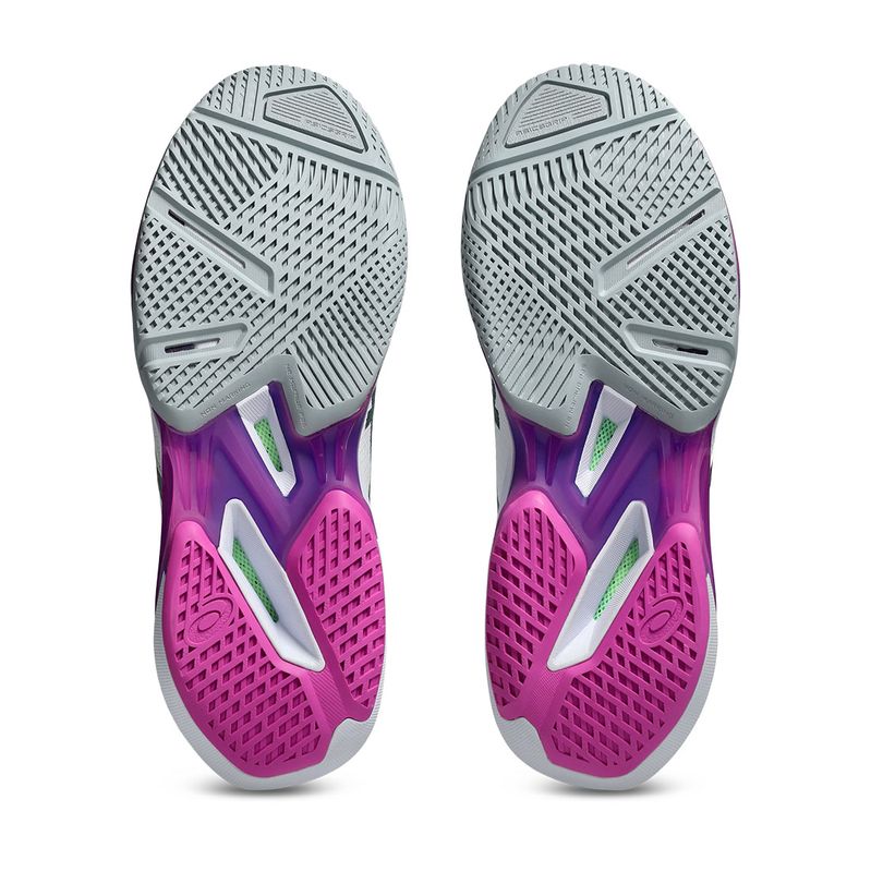 Built for players who thrive on speed, the Solution Speed FF 4 is engineered to support fast, aggressive movement across the court. A softer FLYTEFOAM midsole delivers lightweight cushioning with high energy return for explosive acceleration. SPEEDTRUSS technology enhances stability and responsiveness, helping you cut, sprint, and recover with confidence. The PRECISION SOLE with ASICSGRIP provides reliable traction without sacrificing durability during intense rallies. Reinforced PU loops and medial eyelet loops add durability and help protect laces during abrupt directional changes.