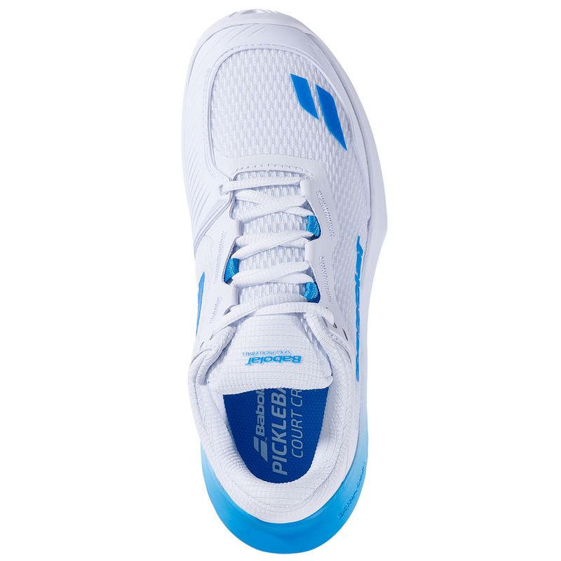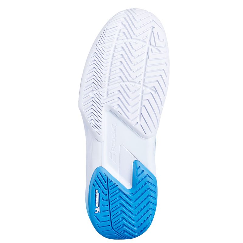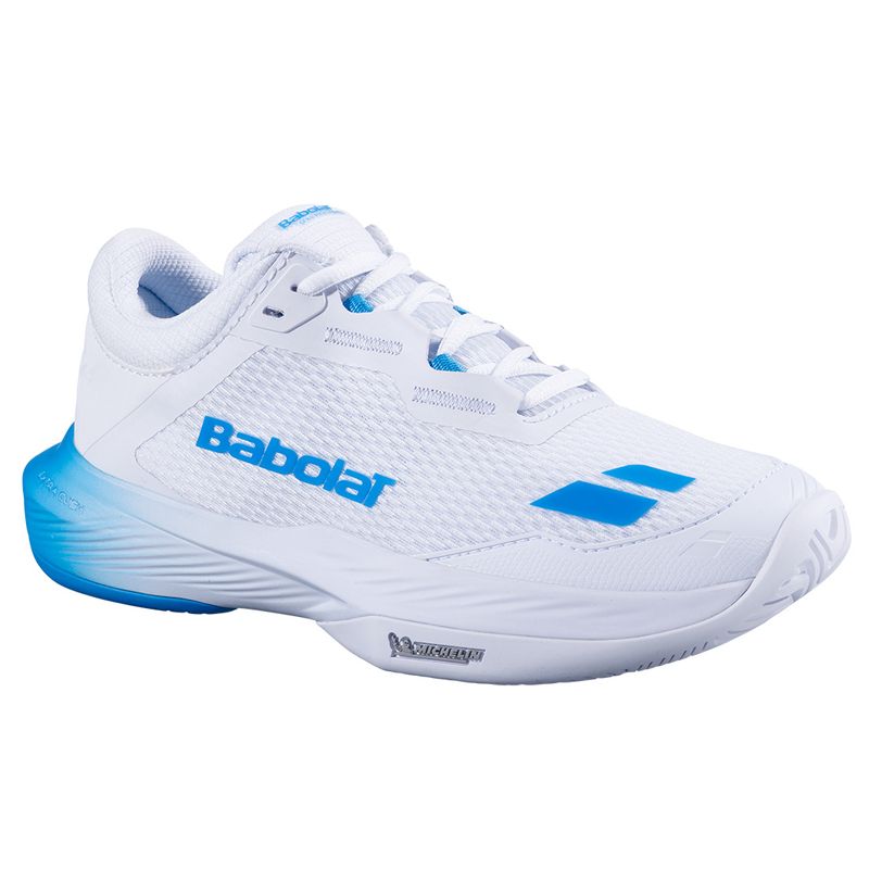 The Babolat SFX 4 Women's Pickleball Shoes offer the perfect blend of comfort, support, and durability, tailored for high-performance players. Its wide fit and rocker geometry provide exceptional cushioning with EVA foam under the heel for shock absorption during rapid play. A breathable, lightweight upper ensures comfort, while dual lateral support straps stabilize the midfoot for agile side-to-side movements. The Pro Shield and bucket-style forefoot protection enhance durability and confidence during quick stops and pivots. Finished with a Michelin Original rubber outsole, these shoes excel in traction and longevity for every challenge on the court.