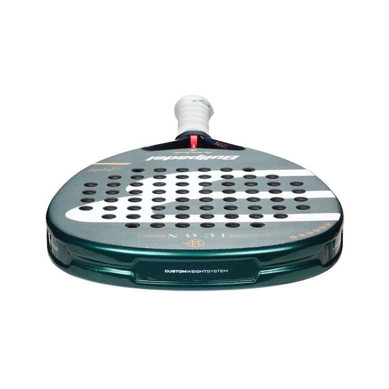 The Bullpadel Icon 2026, inspired by padel legend Juan Martín Díaz, is a powerful racket built for technically skilled attacking players. Its diamond shape and high balance deliver explosive power on smashes and strong net play. Constructed with X-Tend Carbon 12K faces and a MultiEva dual-density core, it offers a solid, responsive feel with excellent durability and comfort. The Torsion Concept System reinforces the frame for added stability and precision. Finished with 3D roughness for enhanced spin, it’s designed for advanced players who want power, control, and performance at the net.