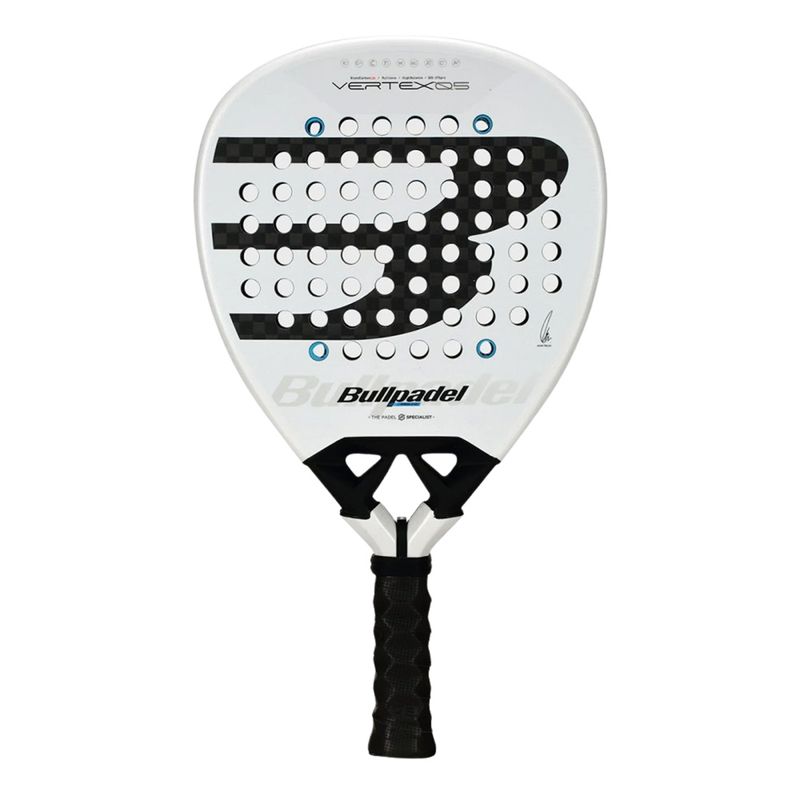 The Bullpadel Vertex 05 2026, used by Juan Tello, is a powerful padel racket built for advanced players who thrive on aggressive attacking play. Its diamond shape and high balance deliver explosive smashes and strong net presence, while the refined triangular heart improves aerodynamics and stability. A 12K carbon surface and MultiEva core provide a crisp, responsive feel with excellent control and durability. The Custom Weight System allows players to adjust balance for a more personalized performance. Finished with a sandpaper-like rough surface for added spin, it offers a versatile blend of power, precision, and stability.