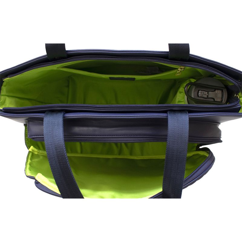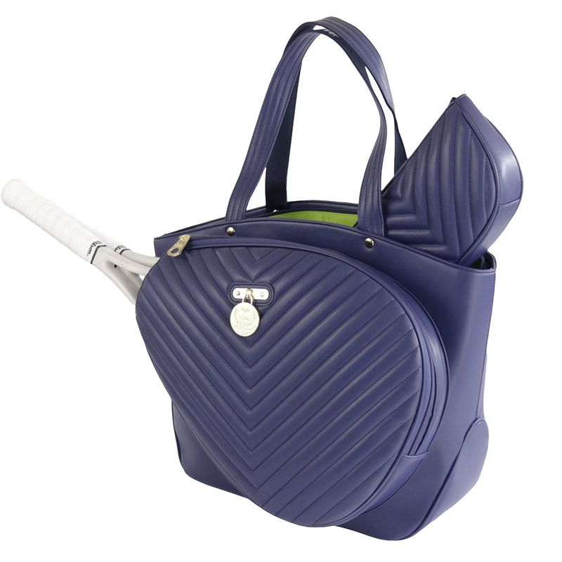 The Court Couture Cassanova Chevron Tennis tote has details on the racquet pocket as well as on the cosmetic case fronts. The tote features a separate compartment that fits two tennis racquets.