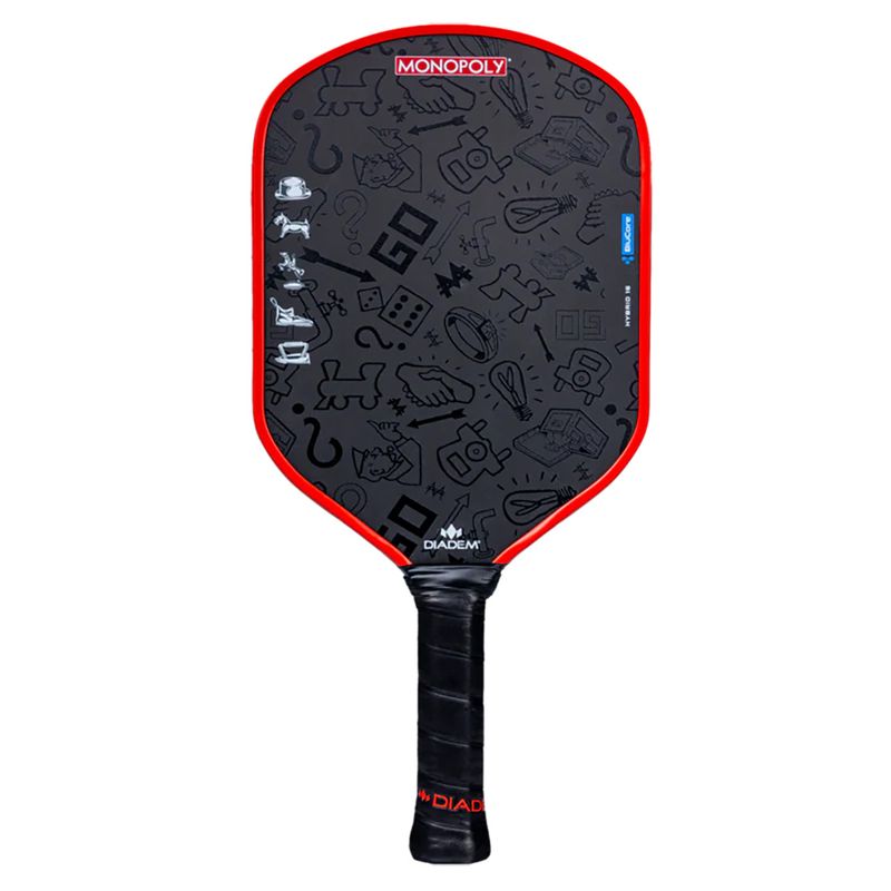 Where elite pickleball engineering meets iconic pop culture — the Diadem Edge BluCore X Monopoly Hybrid 16mm Pickleball Paddle is a collector's dream and a competitor's weapon. Engineered with Diadem's BluCore technology, this paddle delivers controlled power, consistent feel, and steady momentum with every swing. The 16mm Hybrid core adds cushioned control and vibration dampening that makes dinking, resetting, and driving all feel equally effortless. Bold, collectible Monopoly artwork wraps the face and sides, making it the most eye-catching paddle on any court. Packaged in a custom Monopoly collector's box worthy of Park Place status, this is a paddle you'll be proud to display and even prouder to play with. Premium construction ensures durability and consistent performance match after match. Shop the Diadem Edge BluCore X Monopoly Hybrid 16mm Pickleball Paddle at Midwest Racquet Sports — your ticket to Boardwalk-level performance.