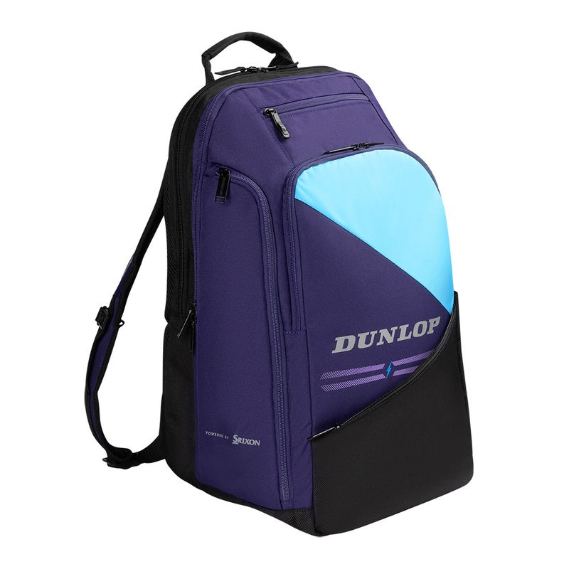 The Dunlop FX Performance Backpack offers a simple, functional way to carry all your court essentials, featuring a padded back compartment that holds up to two racquets with a strap to secure one, plus a spacious secondary compartment for extra gear and accessories. A zippered side pocket is perfect for shoes or clothing, while the opposite side includes a dedicated spot for a water bottle or can of balls, and three front zippered pockets provide additional organized storage. Lightweight and comfortable to carry, this backpack includes a padded back panel and adjustable straps. Dimensions: 20" H x 14" W x 9" D.
