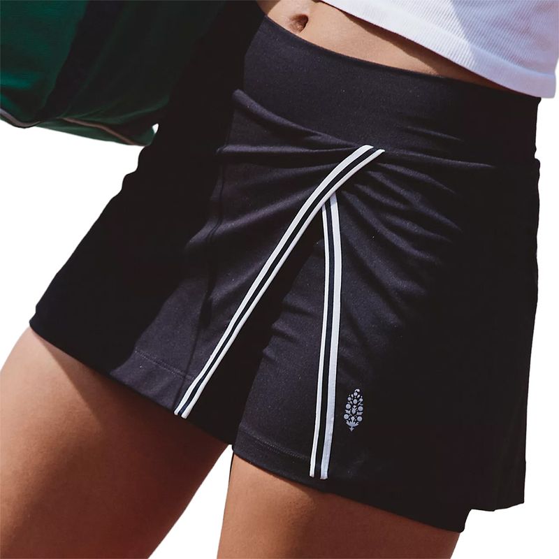 Game-day style starts with the sharp, sporty look of FP Movement’s spring collection. The Forehand Skirt features an elastic waistband, asymmetrical hem with contrast piping, and built-in ball shorts.