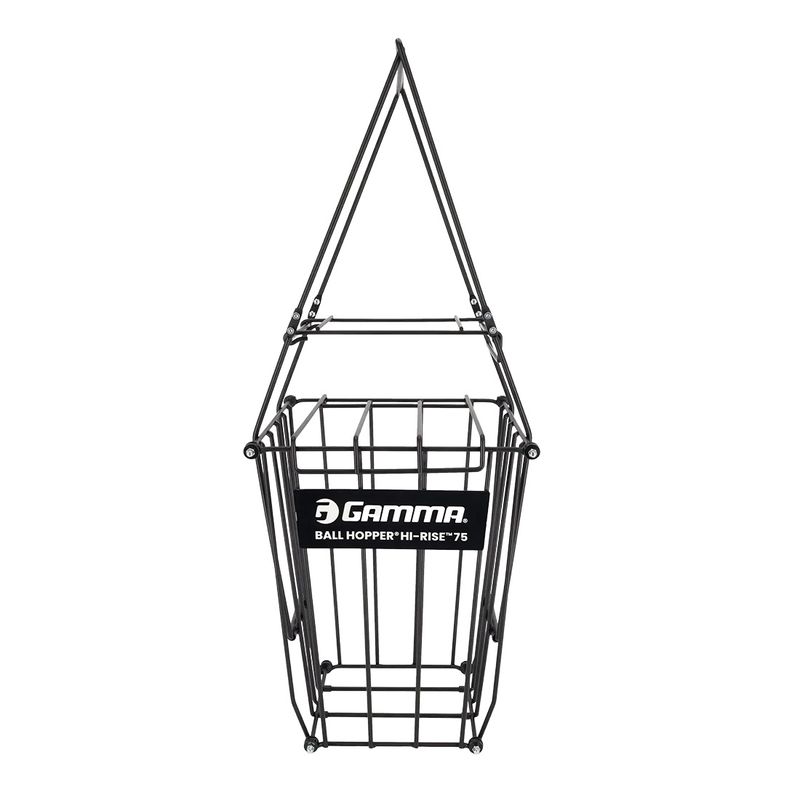 Gamma’s #1 selling Hi-Rise 75 Ball Hopper is the ideal size for players, parents, and teaching pros who need convenience and reliability on court. Designed with locking handles that flip down to raise the basket to fingertip height, it allows for easy ball pickup without bending. The attached locking lid prevents spills during transport, keeping balls secure between drills. Built for everyday use, it holds up to 75 tennis balls in a compact 25 x 11 x 11-inch frame. Assembly required.