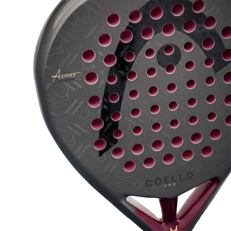 The HEAD Coello Pro 2026 Padel Racket, developed with world No. 1 Arturo Coello, is the most powerful model in the 2026 HEAD lineup, built for expert and tournament players who dominate the net with aggressive volleys and explosive smashes. Its diamond shape and high balance generate maximum power for attacking shots, while the updated design is 5 grams lighter for improved maneuverability without sacrificing stability. Auxetic 2.0 technology enhances feel and responsiveness, while upgraded Power Foam delivers explosive ball output. A carbon hybrid face with Extreme Spin technology increases grip on the ball for added spin and control. Finished with a carbon frame and Power Stabilizer for fast, stable swings, the Coello Pro 2026 features a bold design with Arturo Coello’s signature details.