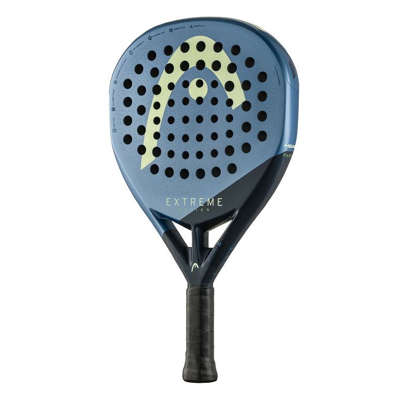 The HEAD Extreme Motion 2025 Padel Racket, endorsed by world No. 1 Paula Josemaría, is a lightweight and maneuverable attacking model designed for advanced and tournament players. Its diamond shape and high balance generate explosive power on smashes, viboras, and aggressive volleys while remaining easier to handle than the Extreme Pro. A unidirectional carbon fiber face and reactive Power Foam deliver stiffness, stability, and fast ball output, while Extreme Spin technology adds extra grip for spin-heavy shots. Auxetic 2.0 technology enhances feel and power at impact, while Soft Cap+ with an exchangeable cord system improves comfort and customization. Finished with a sleek design and updated drilling pattern for a larger sweet spot, the Extreme Motion 2025 is built for players who thrive on aggressive, high-tempo play.