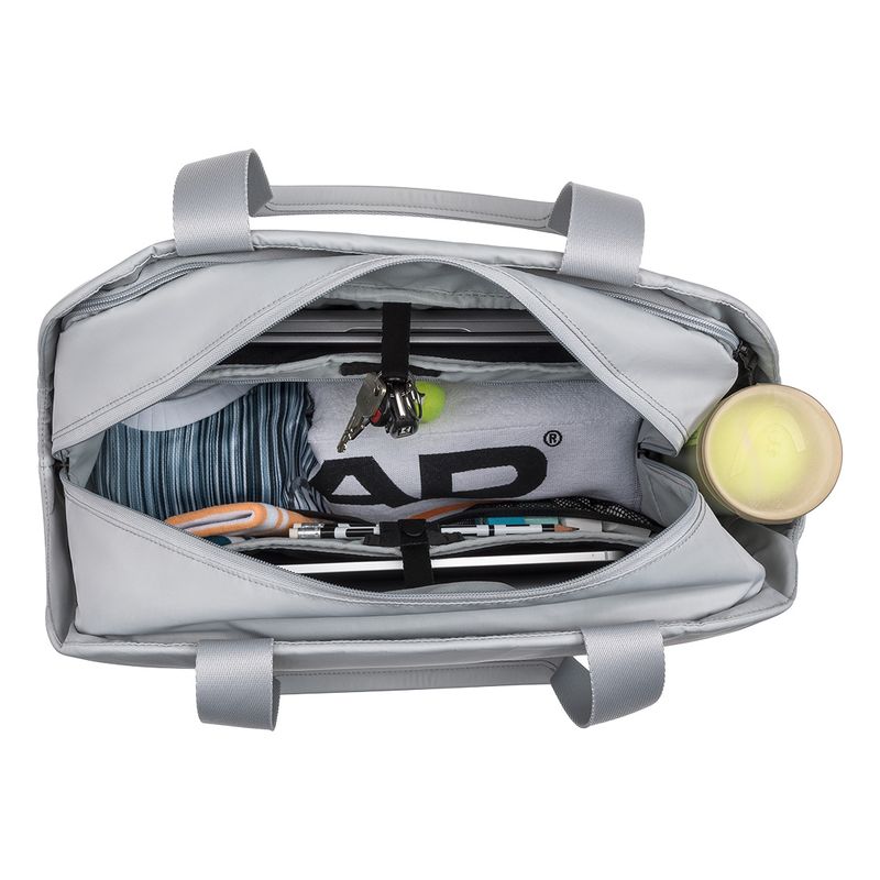 The HEAD Pro X Tote Bag 22L Light Grey blends minimalist style with smart functionality, making it ideal for both everyday use and time on the court. Crafted from lightweight, durable nylon, it features a refined shape with compartments designed to organize and protect your racquet, tech, and personal items. The bag includes two main compartments, a dedicated racquet compartment, laptop or tablet sleeves, and internal mesh pockets for efficient storage. Additional features include an external phone pocket and dual water bottle holders for convenience throughout the day.