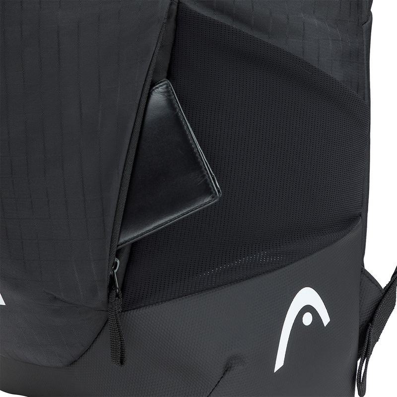 The HEAD Tour Racqpack Bag combines modern style with practical storage, making it ideal for the court, work, or travel. Its rolltop backpack design allows flexible storage while a racquet compartment with CCT+ climate control technology protects up to three racquets from extreme temperatures. Additional features include a laptop sleeve, accessory pockets, and a side pocket for a water bottle or balls to keep essentials organized. An EVA padded back panel with adjustable straps and chest buckles provides comfort and stability while carrying.