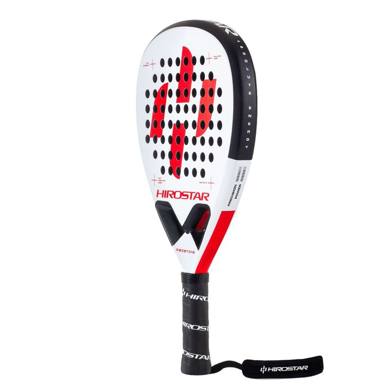 The Redstone racquet features a diamond-shaped design, offering exceptional power and durability. Its double layer of 18K carbon makes it the hardest in the Hirostar collection, ideal for advanced and professional players seeking maximum power in their shots. Despite its aggressive shape, the convex bridge helps absorb vibrations, reducing strain on the elbow and shoulder. The glossy finish, complete with embossed 3D Hirostar logos, provides a textured surface for enhanced grip and control.