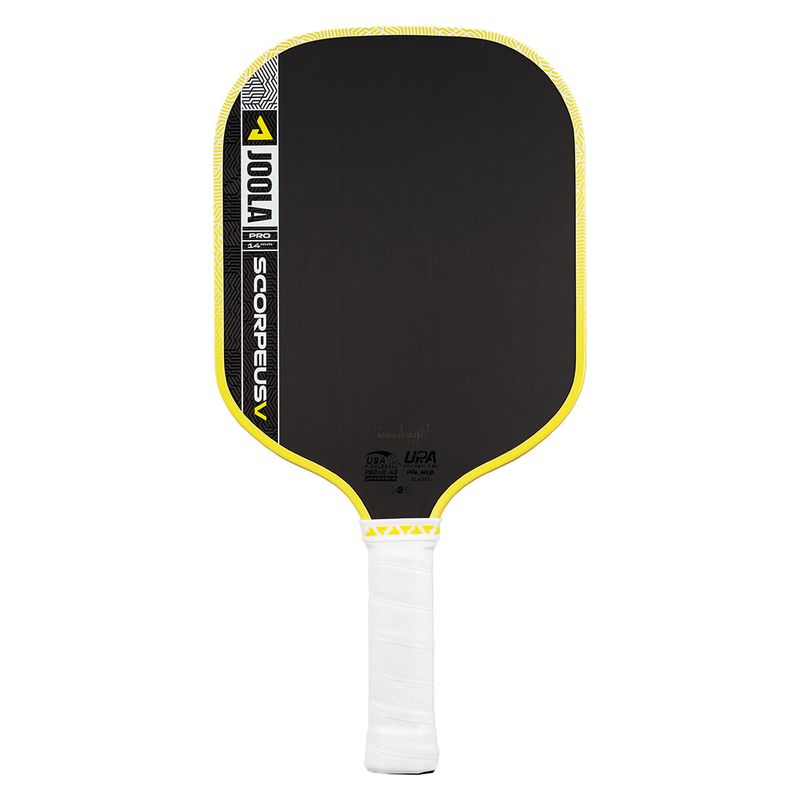 The JOOLA Scorpeus Pro V Pickleball Paddle is a control-focused paddle designed for players who value stability, forgiveness, and precision in fast-paced kitchen exchanges. Its wide, forgiving shape expands the sweet spot, helping deliver consistent blocks, resets, and counters even on off-center contact. Patent-pending KineticFrame technology in the throat flexes to absorb and redirect energy, improving touch and ball placement during defensive play. Signature models include Anna Bright’s 14mm (8.0 oz) and 16mm (8.2 oz) versions with a 4.125" grip, and Collin Johns’ 16mm (8.2 oz) model with a wider 4.25" grip for players with larger hands.
