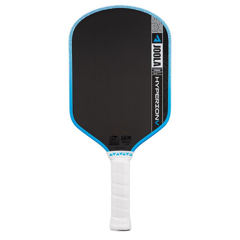 The JOOLA Ben Johns Hyperion Pro V Pickleball Paddle features the brand’s iconic aero-curve shape with an elongated profile for enhanced reach, fast hand speed, and quick reactions at the net. Its patent-pending KineticFrame technology in the throat creates a slimmer frame that flexes to store momentum and release it on impact, improving precision and ball placement. Built for aggressive, fast-paced play, the Hyperion Pro V blends speed, reach, and control, making it a longtime favorite of Ben Johns. Choose the 16mm (8.1 oz, 4.25" grip) for added stability or the 14mm (7.9 oz, 4.125" grip) for quicker handling and responsiveness.