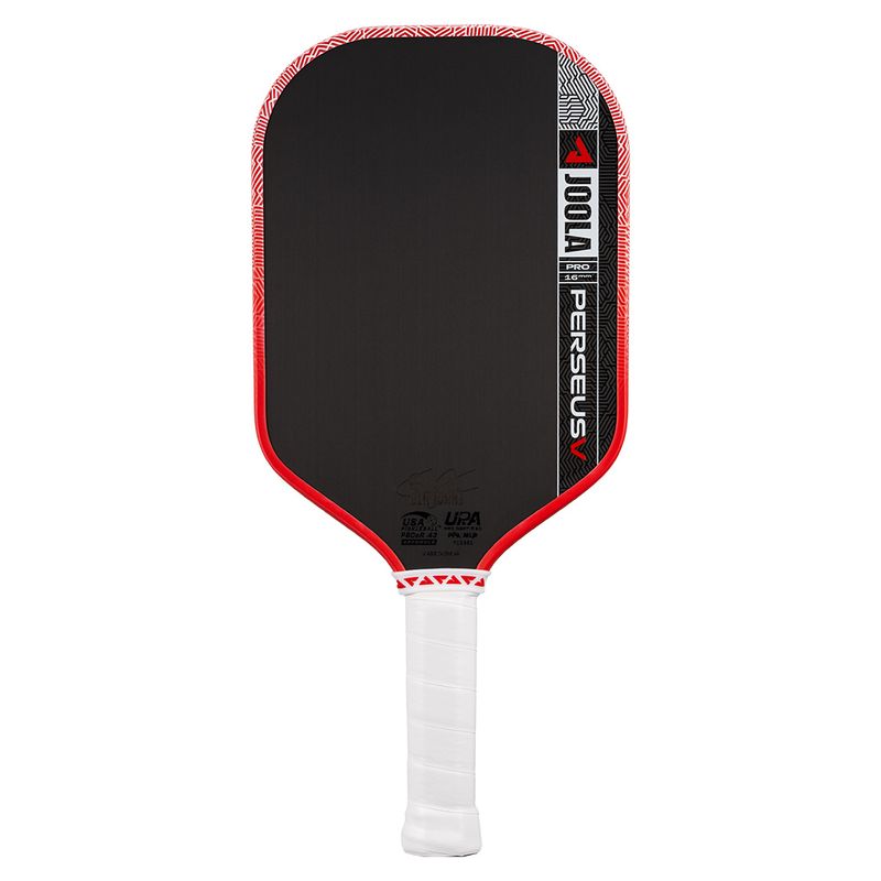 The JOOLA Perseus Pro V Pickleball Paddle unlocks JOOLA’s most popular elongated shape, combining extended reach with a centered sweet spot for consistent performance at the net and in fast rallies. Its patent-pending KineticFrame technology integrates into the throat to create a slimmer frame that flexes to store energy and release it at impact, improving ball placement and responsiveness. Designed for aggressive players who demand consistency, the Perseus Pro V delivers the speed and control needed for high-level play. Signature editions include Ben Johns’ Blaze Red model in 14mm or 16mm core options with a 4.25" grip, and Simone Jardim’s Breeze Blue version with a 16mm core and slimmer 4.125" grip for smaller hands.