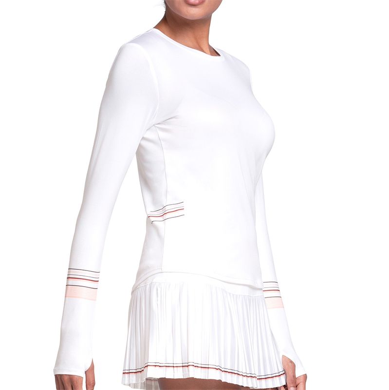 Power up your game in the playful orange hues of the K Swiss Summer 2026 collection. The Accelerate Long Sleeve Top features a slim fit, subtle striped print, and thumbholes. Made with quick-dry, cooling technical fabric.