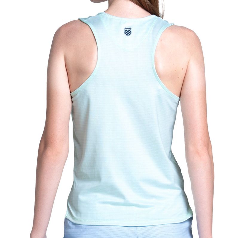 Serve up style and performance in the K Swiss Women’s Summer 2025 Collection. The Action Tank Top is a full coverage tank that features a looser fit and a subtle block print. Made with quick-dry, cooling technical fabric.