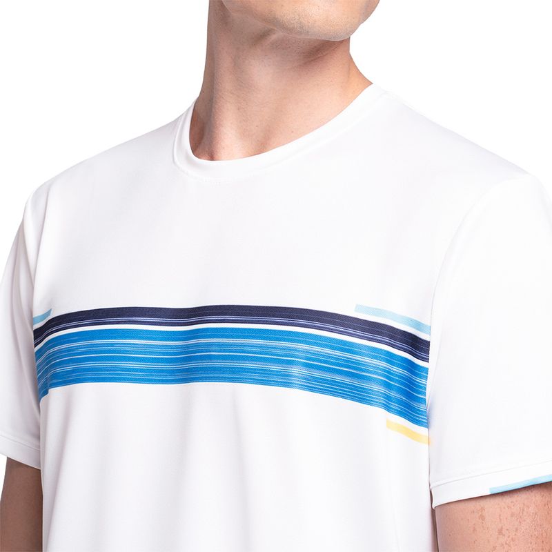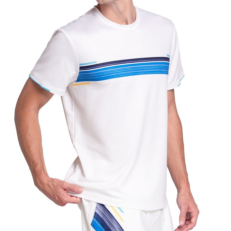 Keep it cool on the courts this spring in the newest tennis collection from K Swiss. The Downforce Crew features a lightweight material and a striped print. Made with quick-dry, cooling technical fabric.