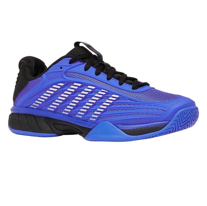 The Junior Hypercourt Express 3 updates the top-selling Hypercourt Express 2 with a newly designed upper featuring durable DuraWrap for added support and protection. Built for junior and varsity-level players, it offers dependable performance and durability on court. A K-EVA midsole delivers a cushioned ride for comfort throughout training and match play.