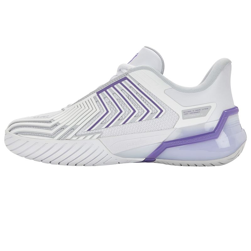 The Ultrashot 4, inspired by the needs of WTA players, combines cutting-edge innovation with uncompromising performance for women who demand excellence on the court. Surge 7.0 midsole technology provides unmatched energy return, while the custom graphite winglet supports dynamic lateral movements. The redesigned Aosta 7.0 outsole delivers exceptional traction, stability, and long-lasting durability. With a 6-month outsole guarantee, this shoe is built to keep up with your most intense matches.
