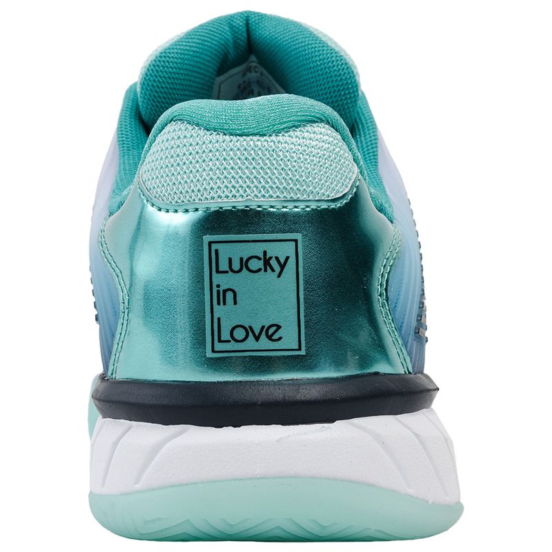 Pioneering tennis footwear and apparel brands, K-Swiss and Lucky In Love, have made history by joining forces for an exclusive product collection collaboration. For this project, K-Swiss utilized the best-selling Hypercourt Express 2 footwear model in collaboration with Lucky In Love's founder, Brad Singer, and his design team. The resulting shoe boasts unique attributes not present in other K-Swiss models, such as collaboration logos, an iridescent heel, and shank, making it a standout creation. This model goes in line with the Lucky In Love " Eyelet You Win" Collection.