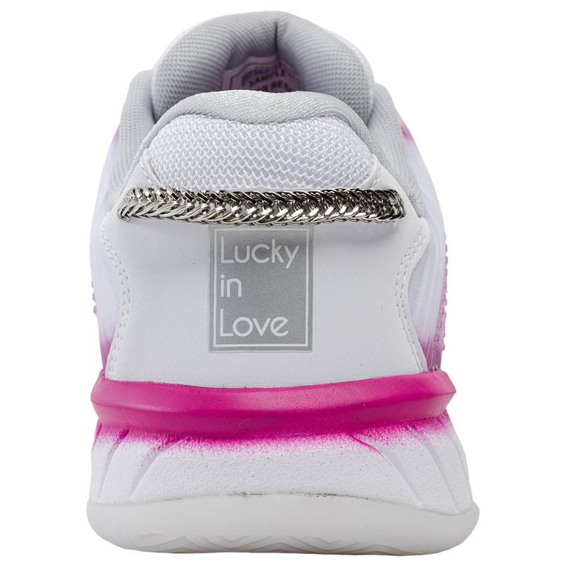 Pioneering tennis footwear and apparel brands, K-Swiss and Lucky In Love, have made history by joining forces for an exclusive product collection collaboration. For this project, K-Swiss utilized the best-selling Hypercourt Express 2 footwear model in collaboration with Lucky In Love's founder, Brad Singer, and his design team. The resulting shoe boasts unique attributes not present in other K-Swiss models, such as collaboration logos, an iridescent heel, and shank, making it a standout creation. This model goes in line with the Lucky In Love " PS I Love You" Collection.