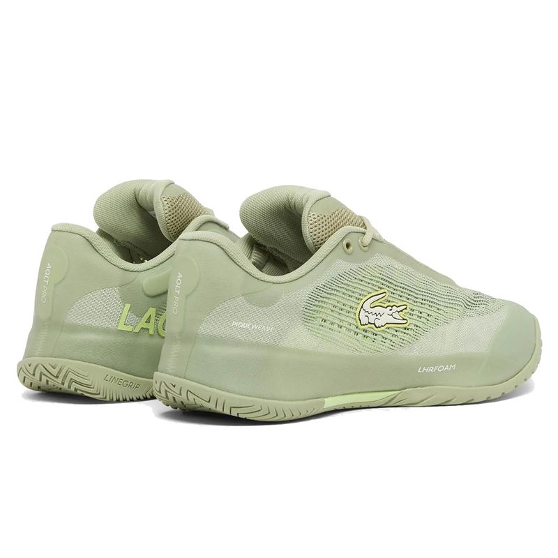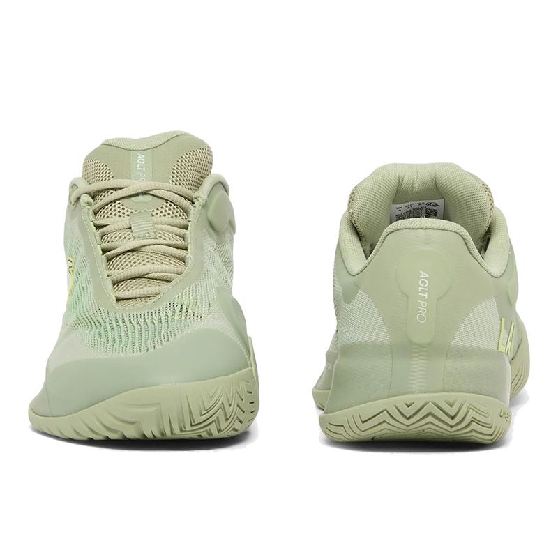 The Lacoste AG-LT Pro Women's in Light Khaki/Light Green brings a fresh, nature-inspired palette to Lacoste's pinnacle performance tennis shoe. This Australian Open colorway delivers an understated, sophisticated aesthetic without sacrificing a single ounce of court-ready technology. Built around an Engineered PiquéWeave Upper, the shoe conceals advanced structural technology including integrated lateral support cages and a hidden TPU shank, providing the lockdown and stability demanded by elite female competitors. The asymmetric eyestay opening allows a precise, personalized fit, while the Dual Density LHR Foam Midsole cushions and stabilizes through every rally. A Rilsan underfoot shank drives responsive energy return, and the re-engineered multi-directional herringbone outsole delivers confident, non-marking grip across all hard court surfaces. CoolMax lining manages moisture and temperature throughout extended match play.