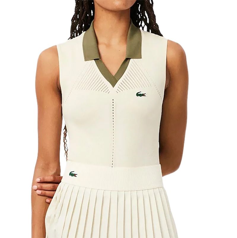 Kick off the new year in the classy Lacoste Australian Open Collection. The Lacoste On Court Sleeveless Tank Top features a slim fit, V-neckline and collar, and seamless details. Made with ultra-dry performance fabric.