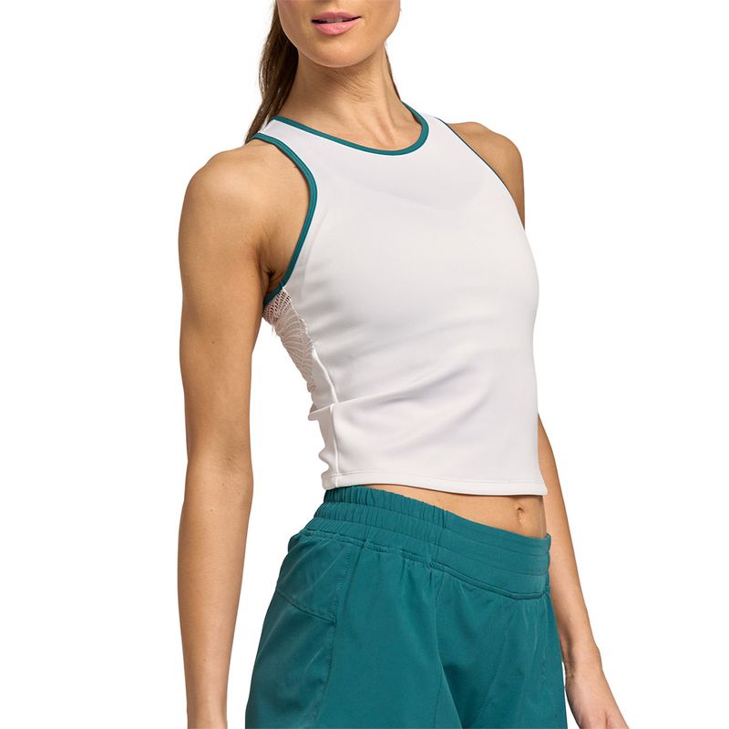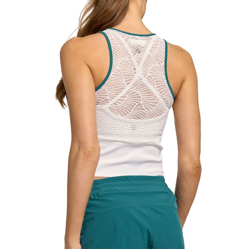 From baseline to net, dominate every rally in Lija’s Match Point collection. The Champion Tank Top features a racerback, contrast-colored seams, and a lace jacquard back. Made with quick-dry technical fabric.