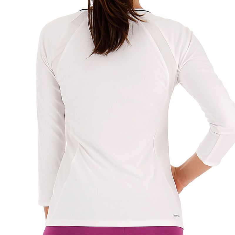 The Lotto Squadra Long Sleeve Top in Brilliant White is ideal for layering or wearing solo during cool conditions. Its smooth polyester fabric provides moisture management and stretch for unrestricted movement. Ribbed cuffs and a clean crew neck design ensure a comfortable, secure fit. Perfect for warm-ups, practice, or casual court wear.