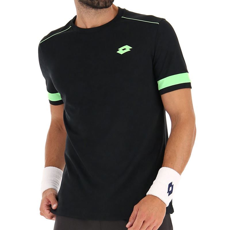 Bring some European style to your game in the Lotto Men’s 2022 Spring line now available in the US. The Superrapida V tee shirt is simple with bold colors, a subtle camouflage print, and accents on the sleeves and shoulders. Made with four-way stretch performance material.