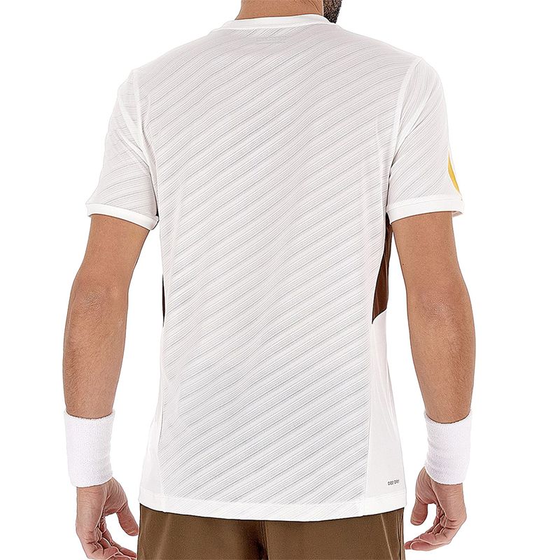 The Lotto Tech 1 Tee in Bright White/Teak Brown fuses understated color with advanced performance technology. Crafted from soft, moisture-wicking polyester, it keeps you cool and focused throughout the game. Its modern fit and stretch fabric ensure comfort in motion. A sophisticated update to the classic court tee.