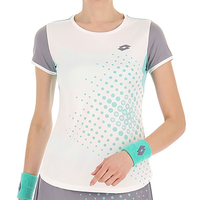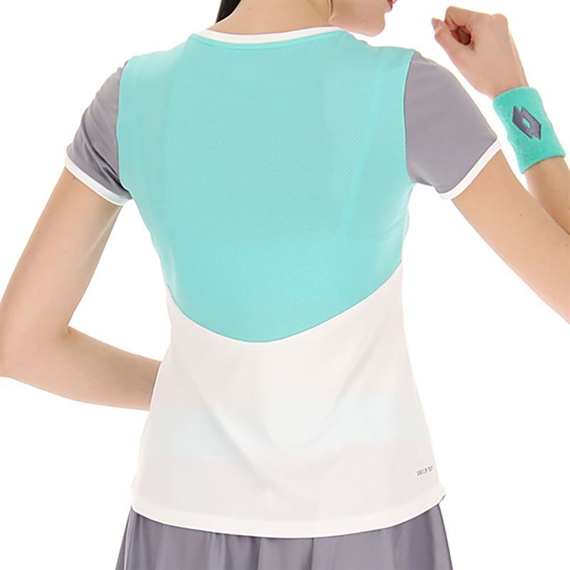 Bring some European style to your game in the Lotto Women's Spring line as seen on top players Ons Jabeur and Elise Mertens, now available in the US. The Top IV 1 tee offers a bit more coverage with color contrast sleeves, , color blocking on the back, and a pixel design on the front. Made with four-way stretch technical fabric.