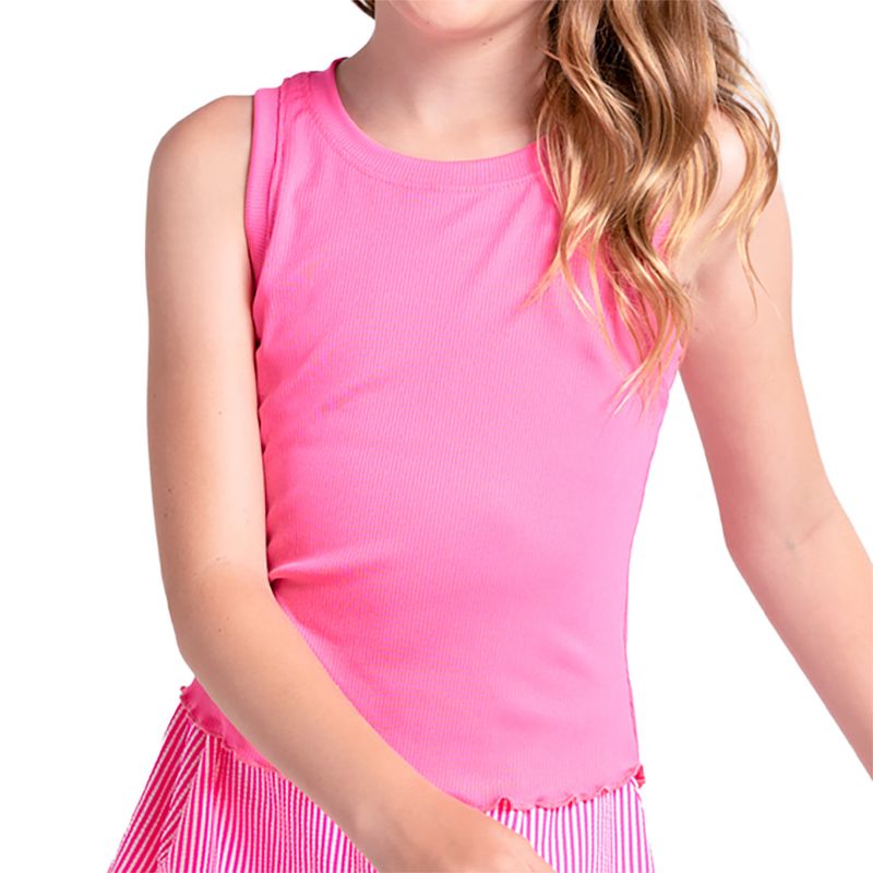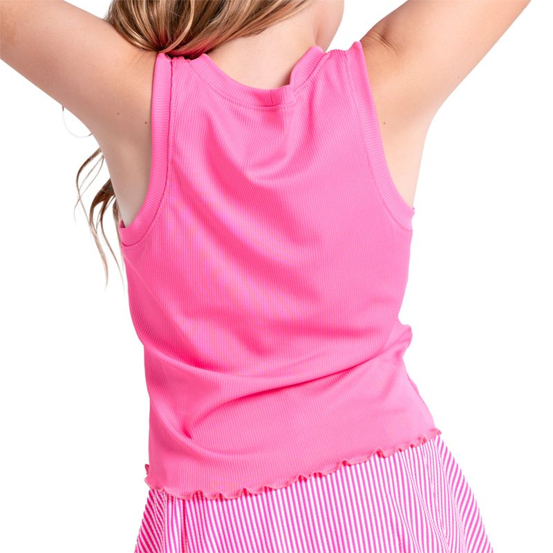 Strut your style on the tennis courts in the bright, fun colors of the Lucky in Love Glow Set collection. The Glow Set Flutterline Tank Top features a ribbed material and ruffled edge. Made with technical fabric to wick sweat away for optimal comfort on the court.