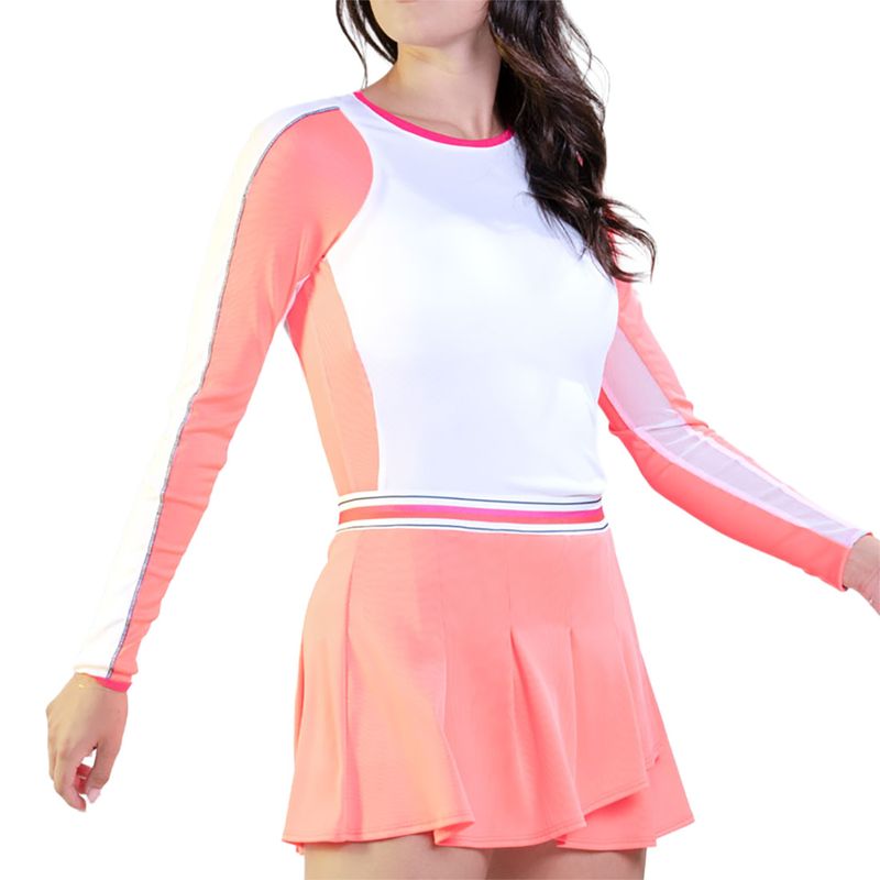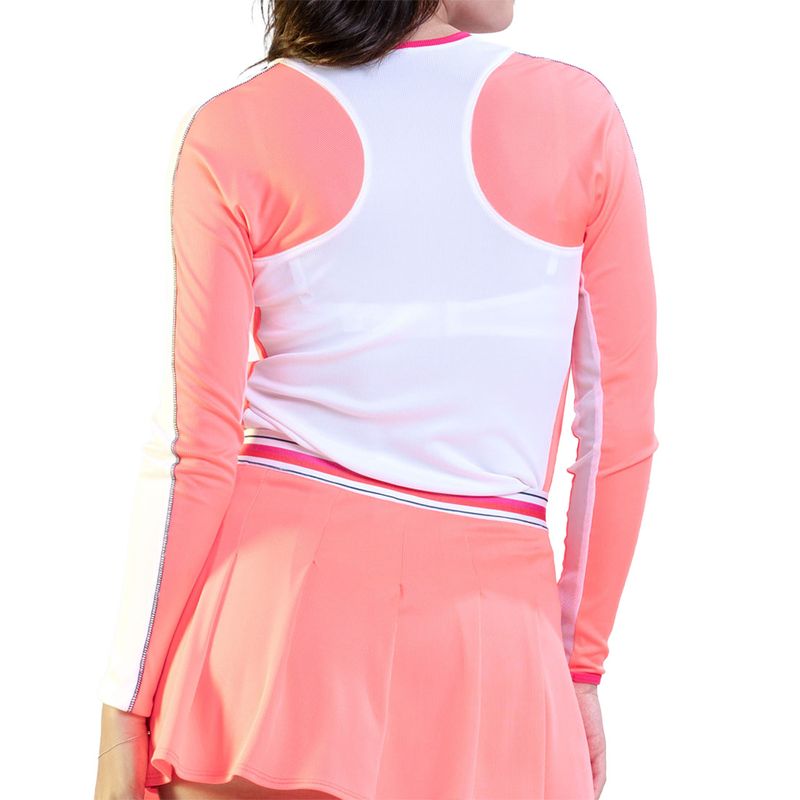 Stay light and fresh on the court this spring in the Lucky in Love Riviera Breeze Collection. The Glow Set Topspin Long Sleeve Top features a slim fit and ribbed material. Made with technical fabric to wick sweat away for optimal comfort.