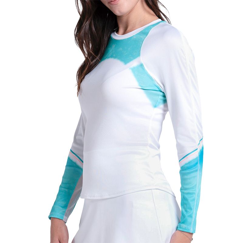 Step onto the court with confidence in the bright colors of the Lucky in Love Making Waves Collection. The Making Waves Sun Beat Long Sleeve Top features a slim fit and ribbed material. Made with technical fabric to wick sweat away for optimal comfort.