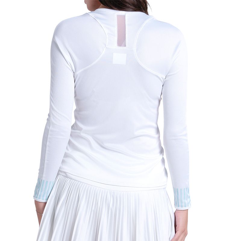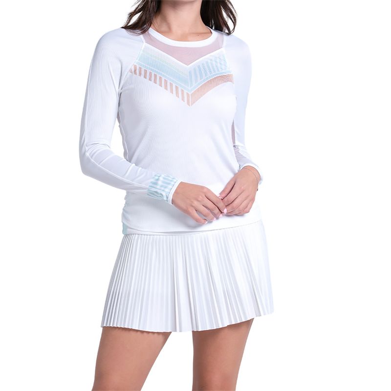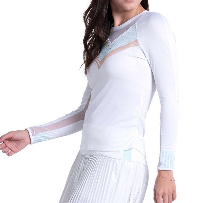 Stay light and fresh on the court this spring in the Lucky in Love Riviera Breeze Collection. The Riviera Breeze Club Long Sleeve Top features a slim fit, ribbed material, and ruched sides. Made with technical fabric to wick sweat away for optimal comfort.