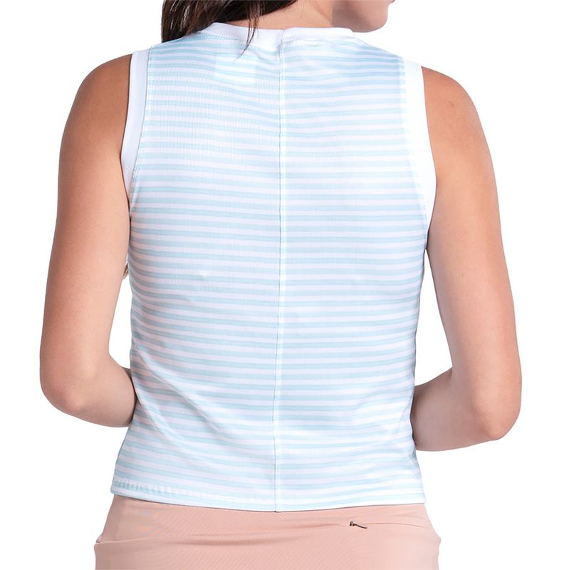 Stay light and fresh on the court this spring in the Lucky in Love Riviera Breeze Collection. The Riviera Breeze Stripe Muscle Tank Top is a full coverage tank that features a ribbed material and striped print. Made with technical fabric to wick sweat away for optimal comfort.