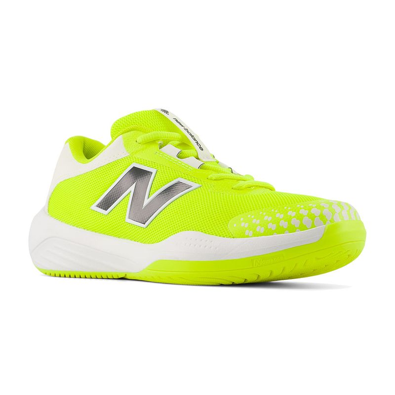 The New Balance 996v6 Junior Tennis Shoes are designed for young athletes who demand speed and comfort on the court. Featuring NDurance rubber outsole technology, these shoes provide superior durability in high-wear areas, ensuring they last through every match. The non-marking outsole preserves court surfaces, while the film toe guard offers extra protection during slides and quick movements. Made with a breathable mesh upper and lightweight synthetic materials, these shoes keep kids' feet cool and comfortable throughout the game.