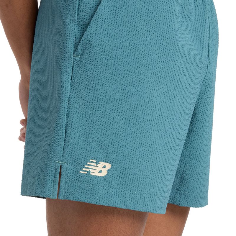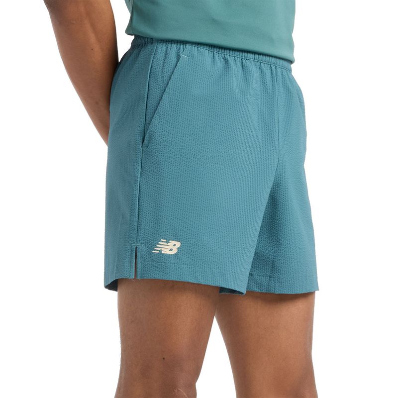 Serve up style and performance in the New Balance US Open 2025 Collection. The Tournament Seersucker Short features an elastic waistband with adjustable drawcords, side pockets, 4-way stretch seersucker fabric, and NB DRY fast-drying technology.