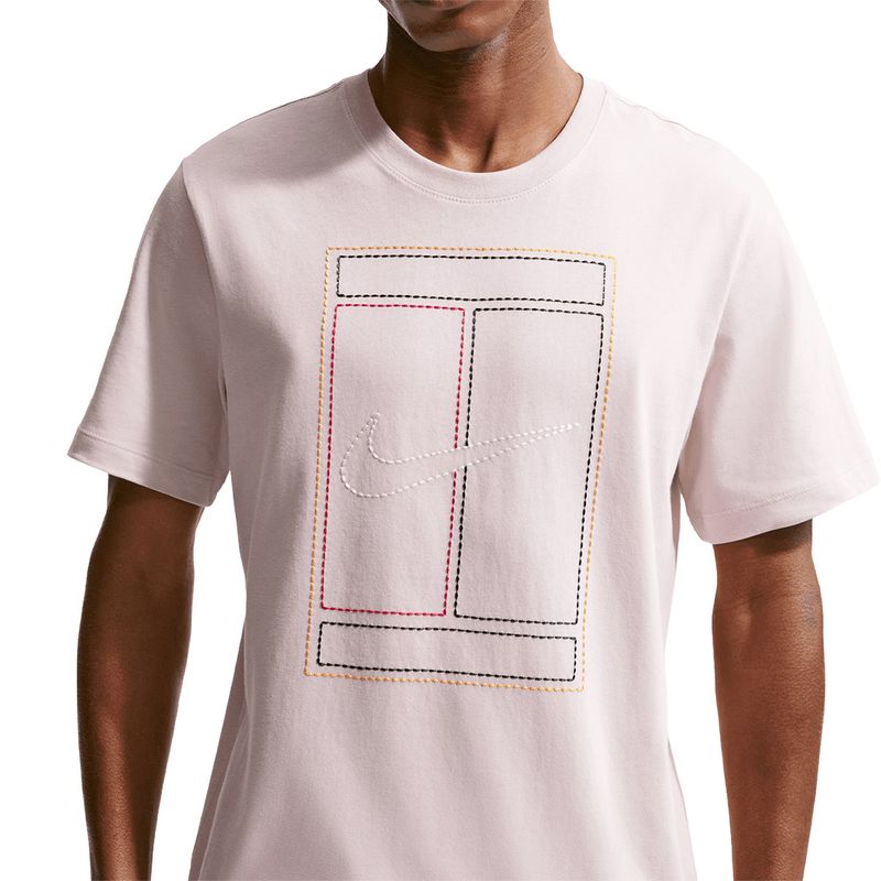Court energy starts with what you wear — power up in Nike’s fun collection of graphics. The Nike Court Heritage Tee Shirt is a comfortable crewneck with an embroidered tennis graphic. Made with Dri-Fit technology for optimal breathability and moisture-wicking.